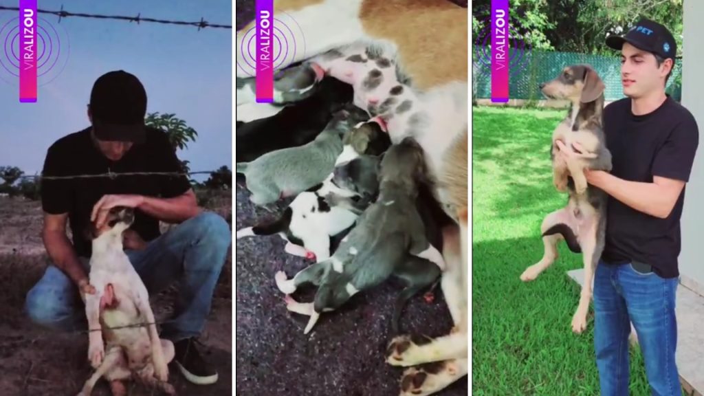 “Ela foi abandonada grávida, tadinha, mas é muito mansinha”, contou Afonso no vídeo, enquanto mostrava o momento do resgate.