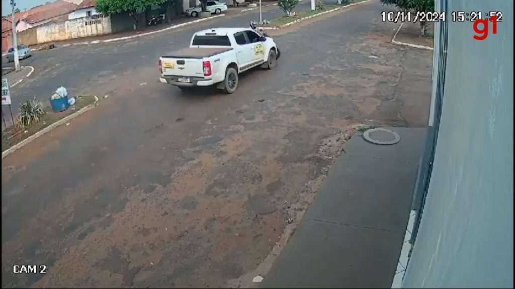 No vídeo é possível ver que a caminhonete e a moto batem no meio do cruzamento da Avenida Cruzeiro do Sul. Por causa do impacto, o motociclista é jogado para a calçada de um estabelecimento. Em seguida, o motorista e o passageiro que estavam na caminhonete descem e vão em direção à vítima.